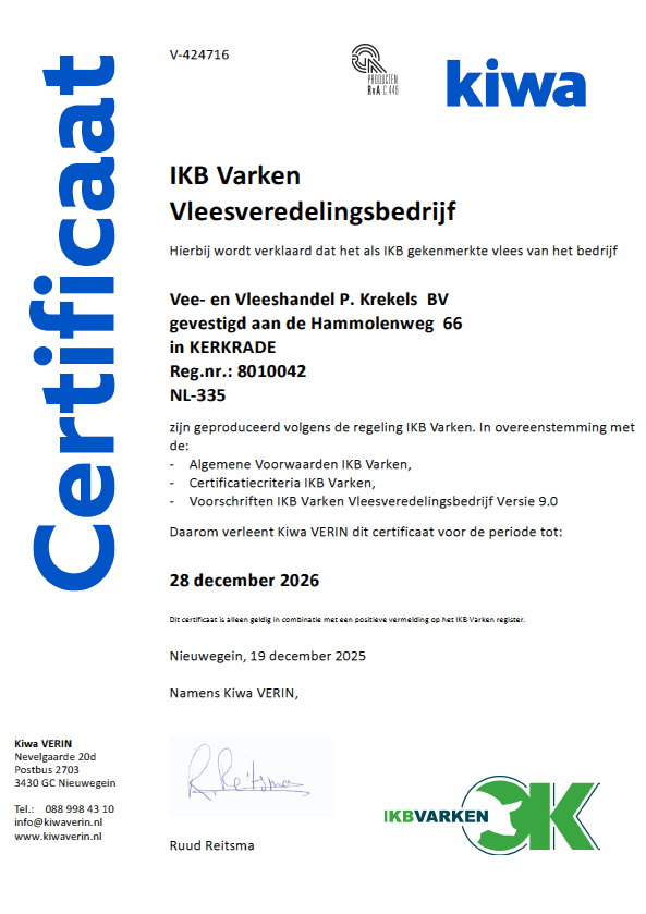 IKB is een kwaliteitskeurmerk “van boeren, voor consumenten”, wat garandeert dat het vlees op betrouwbare, Nederlandse en geborgde wijze wordt geproduceerd. Consumenten welke IKB Nederland gecertificeerd vlees kopen hebben de garantie dat deze bedrijven op een onafhankelijke en onpartijdige manier worden gecontroleerd op de verschillende voorwaarden. In de reglementen van het IKB is opgesteld dat wordt voldaan aan de normen van dierenwelzijn, diergezondheid en voedselveiligheid