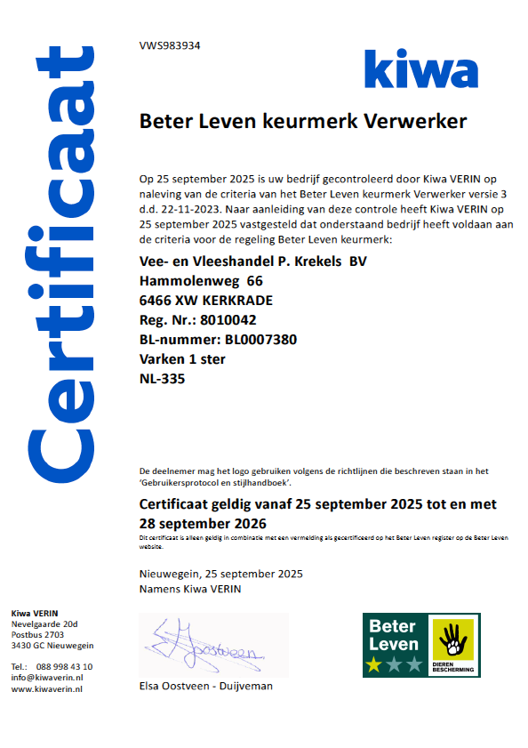 Het varkensvlees met een Beter Leven Keurmerk staat voor diervriendelijk varkensvlees. Met varkenshoudens en andere bedrijven in de keten zijn afspraken gemaakt over meer leefruimte, minder of geen ingrepen die het welzijn van de dieren aantast en andere verbeteringen van de leefomgeving. Het Beter leven 1 ster keurmerk houdt in: